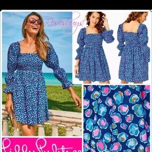 NWT Lilly Pulitzer Beyonca Spot Print Smocked Babydoll Dress - Size Small