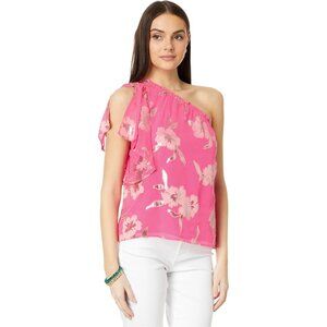 Embrace a vibrant look with this Lilly Pulitzer blouse. The off-shoulder design adds a stylish flair, while the pink and gold floral pattern exudes elegance. Its sleeveless cut ensures comfort, making it ideal for warm weather outings. Elevate your wardrobe with this chic and versatile piece.