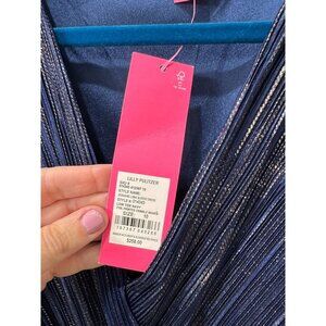 Elevate your wardrobe with this stunning Lilly Pulitzer dress, featuring a flattering V-neckline and long sleeves. The navy and gold metallic stripes add a touch of elegance, perfect for making a statement at your next event. Crafted from high-quality materials, this dress ensures both comfort and style.