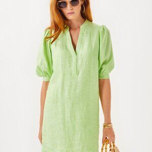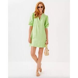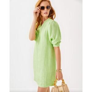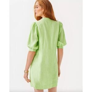 NWT Lilly Pulitzer Green Lime Breathable Linen Puff Sleeve Mini Dress Size 6