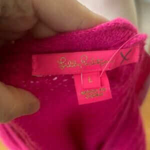 NWT Lilly Pulitzer Laelynn Hot Pink Rhinestone Button Blouson Sleeve Cardigan