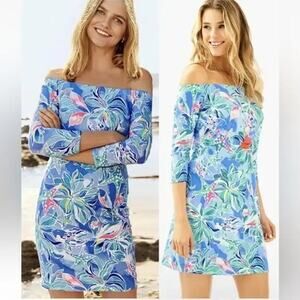 NWT Lilly Pulitzer Laurana Off Shoulder Dress Celestial Seas Size XXS