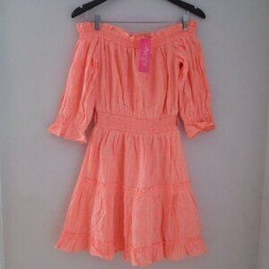 NWT Lilly Pulitzer Louisa Off The Shoulder Orange Mini Dress Size Medium