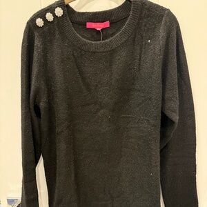 NWT Lilly Pulitzer Morgan Black Sweater Crystal Buttons on Shoulder