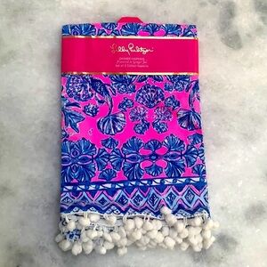 NWT Lilly Pulitzer Napkins Set of 2 Ginger Jar Hot Pink Blue Cotton Pom Poms