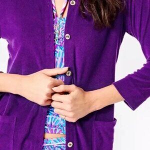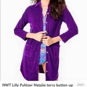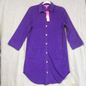NWT Lilly Pulitzer Natalie Terry Coverup Purple Berry Button Swim Beach Pool XS