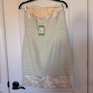 NWT Lilly Pulitzer Remi Striped Strapless Size 8 Dress in Cream and Turquoise