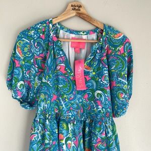 NWT Lilly Pulitzer Shannon Tiered Swing Dress in Seabreeze Blue Women's Size XS