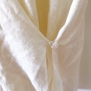 Creamy white long sleeve sweater. Wraps and fastens with interior button, similar to ballerina warm up sweaters. Cashmere blend.