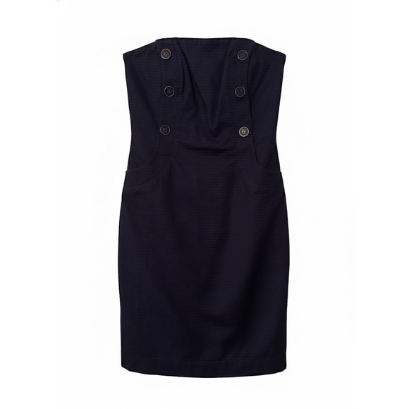 Keywords: Lilly Pulitzer dress, nautical dress, strapless, button detail, bright navy, summer dress, cocktail dress, resort wear, preppy, classic, elegant, womens fashion