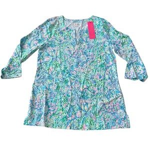 NWT Lilly Pulitzer Women’s UPF 50+ Karina Tunic in Soleil It On Me in Surf Blue
