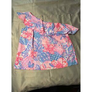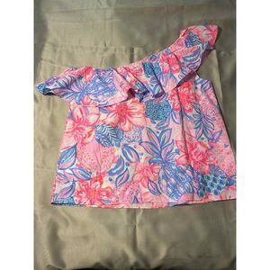 NWT Lilly Pulitzer Zeldie One-Shoulder Ruffle Top Pink Isle Snappy Turtle Size M MSRP $108 Comes from a pet and smoke free home. Please feel free to contact me if you have any questions. Thanks for looking!