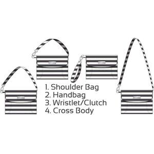 Change your baby and your style in a snap! LillyBit is a collection of functional and fashionable diaper bags and other unique personal accessories for the on-the-go mom. Sophisticated design and chic fabrics can be enjoyed by moms even after baby grows. Our Diaper Clutch includes two straps that adjust to four bag styles. Patented design allows mom to convert the strap to fit her personal style. Unique tri-fold bag provides quick access to essential diapering supplies including diapers, wipes and rash ointments, and includes an interchangeable strap that can be worn a number of ways including over-the-shoulder, and as a handbag, wristlet or clutch. And now with a Detachable changing pad for easier diapering on the go.