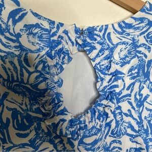 New with tags! Lily Pulitzer Fiesta Stretch Dress, size 8. Blue and white pattern with 3/4 sleeve.