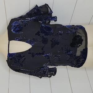 NWT Lily White black and blue velvet brocade pullover blouse