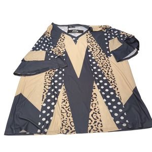 NWT Lily by Firmiana Beige Cheetah Polka Dot Polyester Blend Blouse Womens 3XL