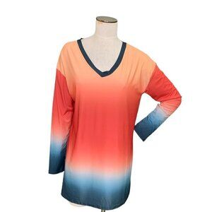 NWT Lily by Firmiana Long Sleeve V-Neck Tunic Top Ombre Color Gradient S #121G