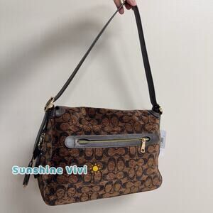 NWT Limited Coach Etta Flap Shoulder Bag in Signature Chenille CCE58 IM/Truffle