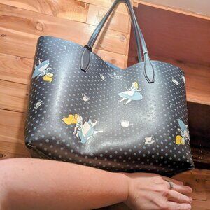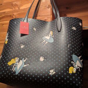 Limited Edition Full sized Kate Spade Alice in Wonderland tote with matching make-up bag and wallet- genuine leather navy blue and baby blue hues. NWT never used!