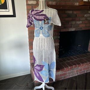NWT Lim’s Shanghai Hand Crocheted Knitted Floral Midi Dress Sz S