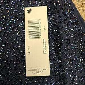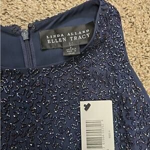 NWT Linda Allard Ellen Tracy Silk Embellished Navy Blue Beaded Dress Womens 6
