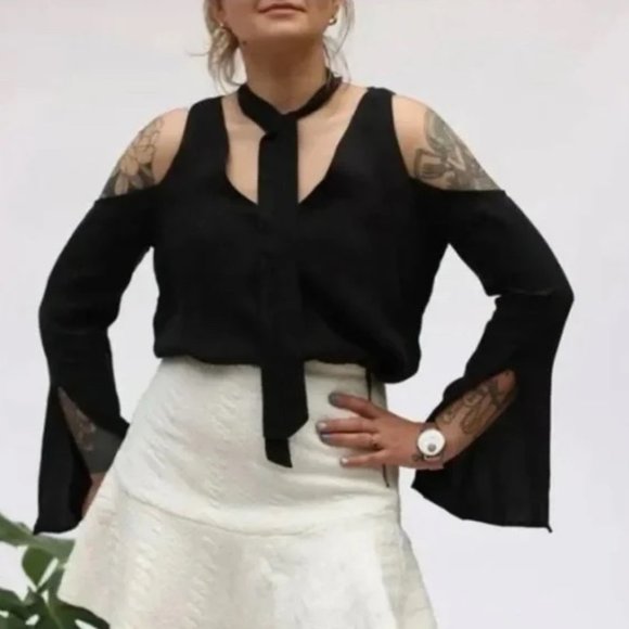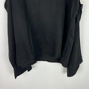 NWT Line & Dot Cupro Cold Shoulder Top Tie Neck Black Size Large L NEW