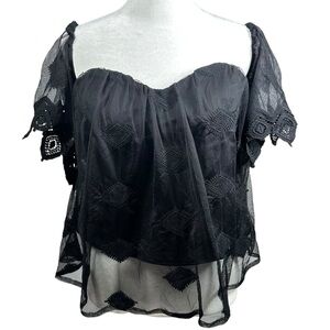 NWT Line & Dot Jean Michel Flutter Top Women's Small S Black Off Shoulder Mesh
