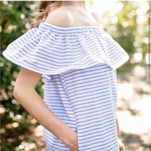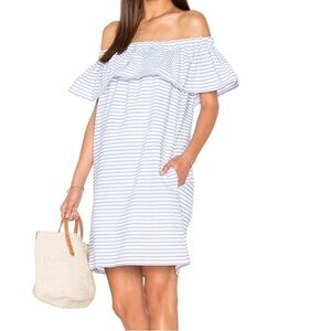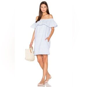 NWT Line + Dot Lea Ruffle Mini Dress in French Blue Cotton Off Shoulder Sz L