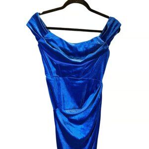 Line & Dot Du Jour Corset Velvet Draped Off Shoulder Midi Dress Sapphire Size XS