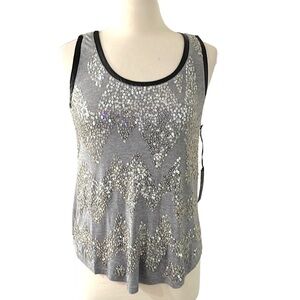 NWT Line and Dot Sequined Tank Top Grey SZ S