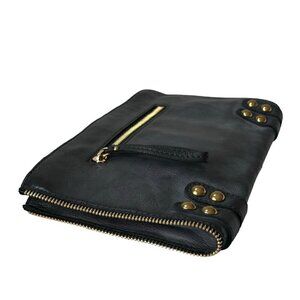 NWT Linea Pelle Dylan Large Clutch Black Leather Double Zip Studded Boho Y2K
