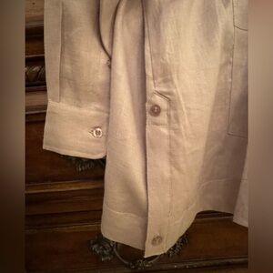 100% Linen ‘Cuban Style’ long sleeve button down shirt. Four pockets, pinched seams, vented sides. Classic style for tropics and hot hot hot weather. 32” long. P2P is 25.5 “. This is a men’s XXL. Brand is Ted Lapidus.