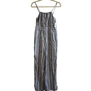 NWT Linen-Blend Cami Wide-Leg Jumpsuit Navy White Striped Size Medium