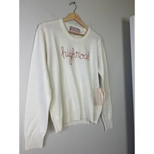 NWT Lingua Franca Cashmere Embroidered Long Sleeve Knit Sweater Cream Size: L