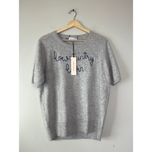 Lingua Franca Cashmere Short Raglan Sleeve Pullover Embroidered Top Gray. New with tag!