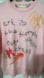 Light pink sweater featuring artistic embroidered text in black, white, red, green, silver and yellow.