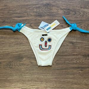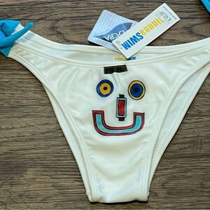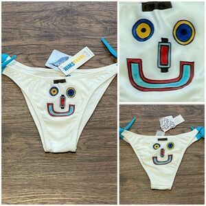 NWT Linnea Hand Painted Bikini Bottom Made In Brazil Robot Face White Red Blue M