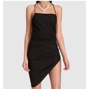 Chic black dress with an asymmetrical hem. Perfect for stylish evenings.