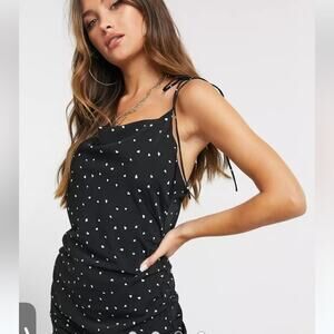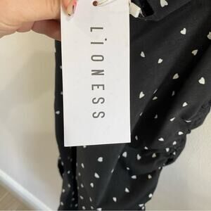 NWT Lioness String Along Mini Dress Black Heart Print Ruched Adjustable 4