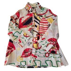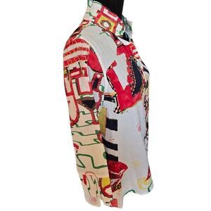 NWT Lior Womens Elise Multicolor Long Sleeve Button Front Tunic Blouse Size Smal