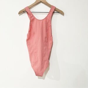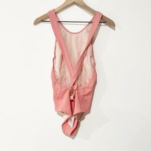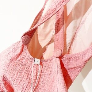 🛍️NWT Lisa Marie Fernandez High Neck Open Back Crepe Button Seersucker Swimsuit