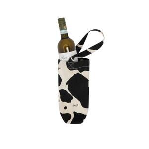 This trendy wine tote by Lisa Says Gah features a black and white cow print, perfect for a stylish carry at any occasion. Made from durable canvas, it's both sturdy and chic.