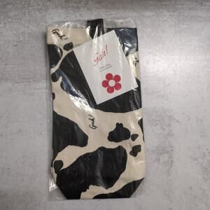 NWT Lisa Says Gah Black and Ivory Cow Print Canvas Wine Tote