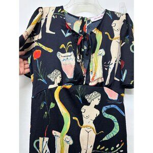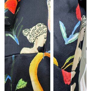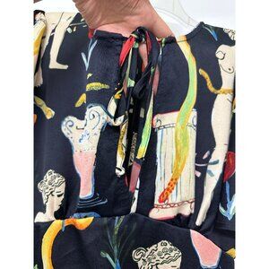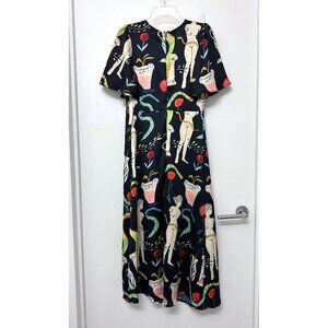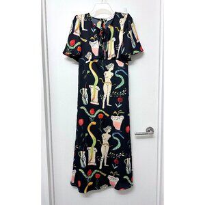NWT Lisa Says Gah Penelope Museo Nero Print Midi Dress Black Statue Vase S
