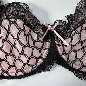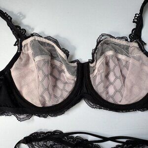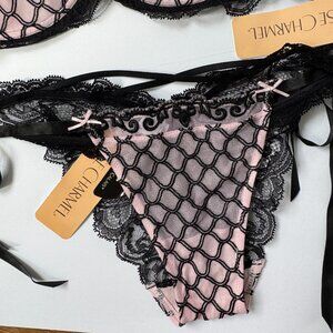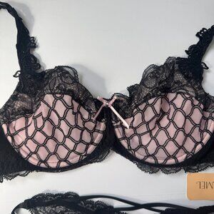NWT Lise Charmel J'Avoue Rose and Black Bra and Panty Set - 32D / S