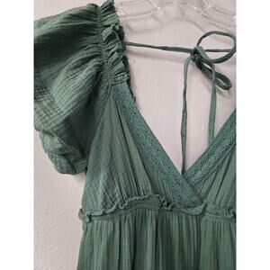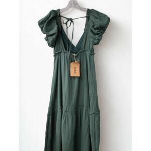 NWT Listicle Dark Green Gauze Tiered Midi Dress Small Smocked Puff Sleeve