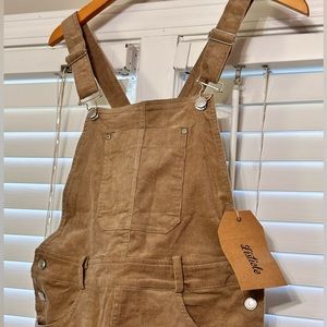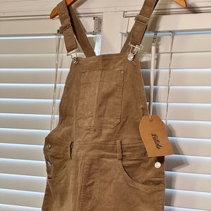 NWT Listicle Tan Corduroy Straight leg overall Jumpsuit size Medium