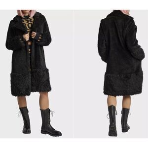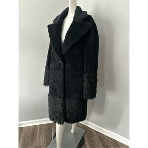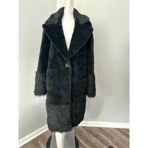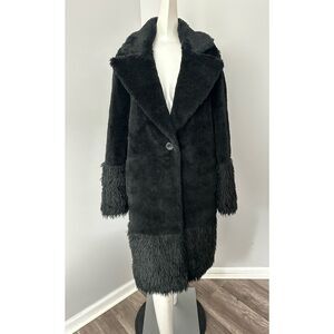 NWT Lita By Ciara Single Button Faux Fur Wool Blend Teddy Coat Black Medium