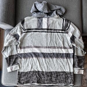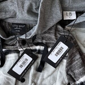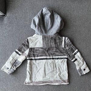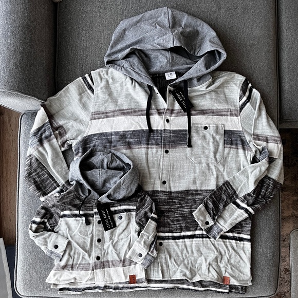Little Bipsy matching set, striped button up hoodies in a light mint green, grey, and white color.