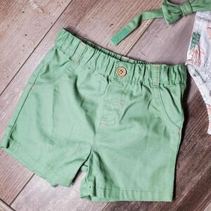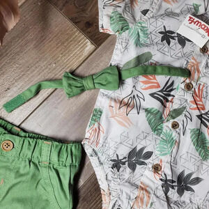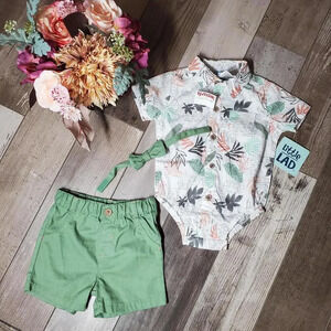 NWT Little Lad Baby Boys Buttondown Shorts Tropical Set with Necktie Size 6-9M